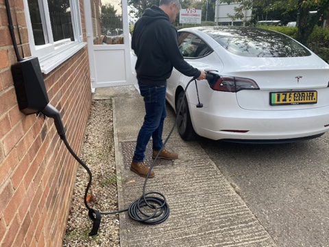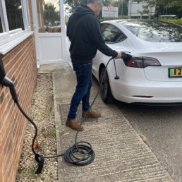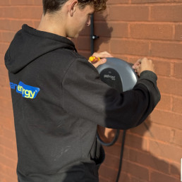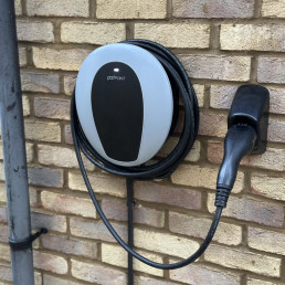 Pod Point EV charger, simple and reliable. Option to store your portable cable around the unit.